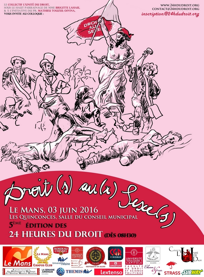 Le 03 juin 2016 aura lieu, au Mans, la 5ème édition des 24 heures du Droit en partenariat avec les Universités de Toulouse 1 Capitole (IMH) et du Maine (Themis-Um). Cet événement comprend un colloque intitulé droit(s) au(x) sexe(s); un jeu inter-universitaire avec 20 équipes venues de toute la France ainsi qu'un gala ! Pour plus de renseignements.