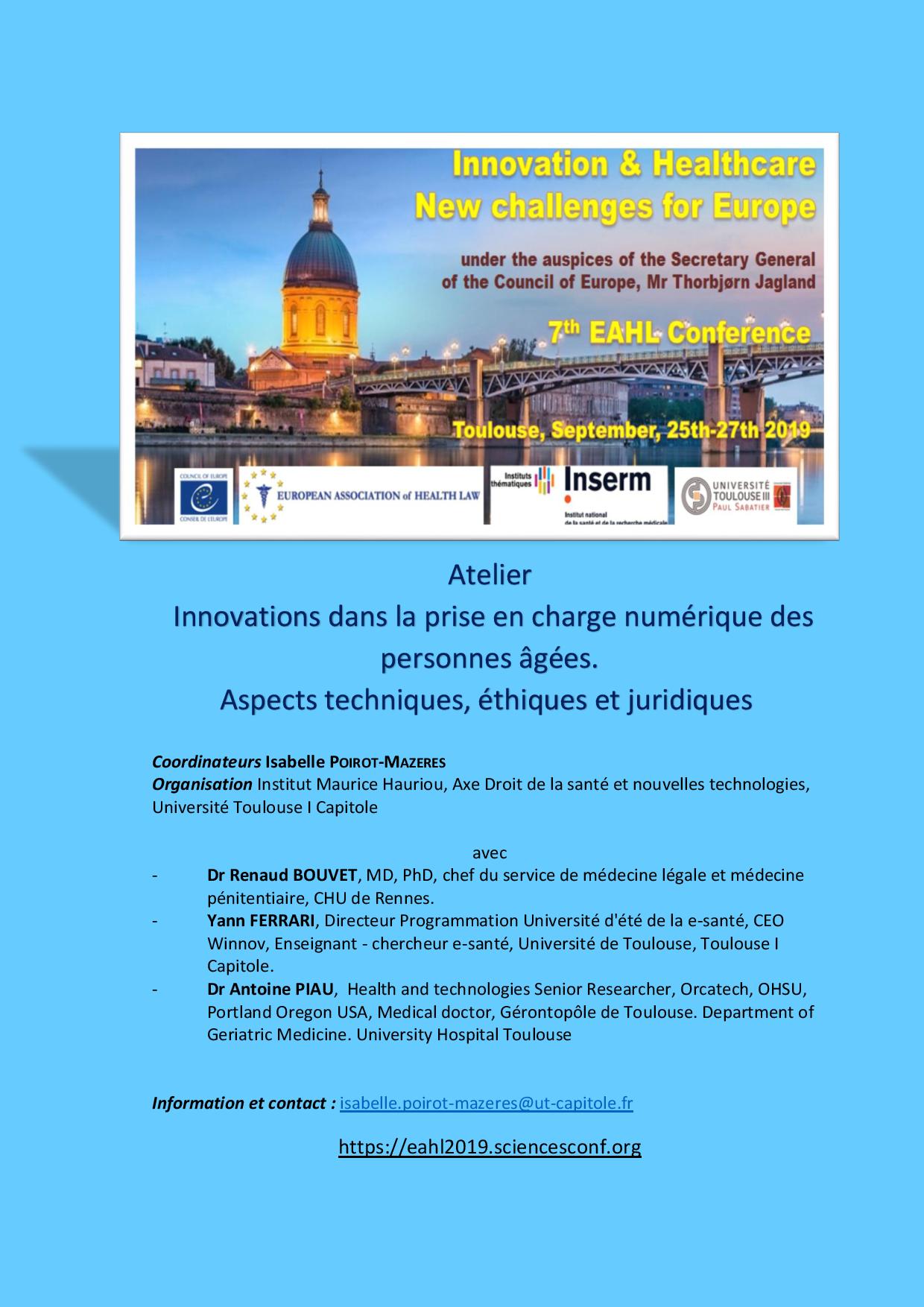 "Atelier Innovations dans la prise en charge numérique des personnes âgées. Aspects techniques, éthiques et juridiques " organisé par le Pr Isabelle POIROT MAZERES
